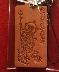 烏瑟沙摩明王のお姿入りの革製ストラップお守りです。